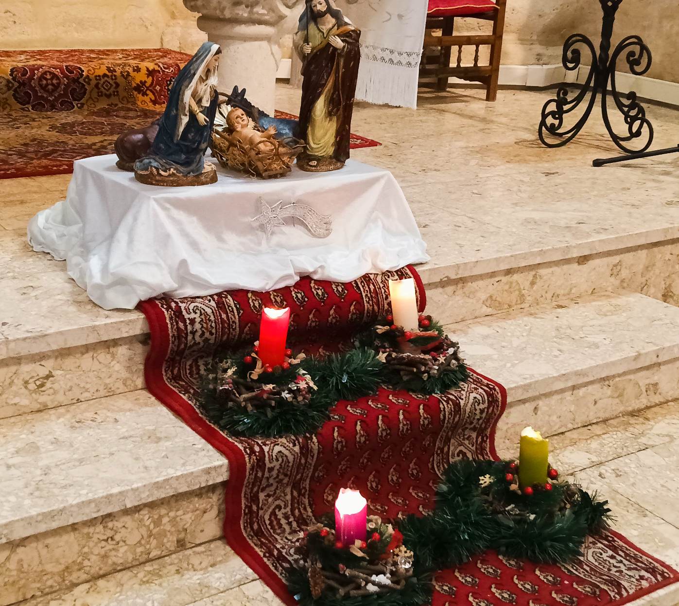 Arbol de navidad 🎄 y belén en la iglesia de Cavia.
