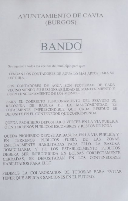 Bando municipal de Cavia. Para este año 2025 revisad los contadores de agua 💧 porque la lectura es manual, como se ha hecho siempre, aunque ya se están reemplazando en otras poblaciones por telemetría para evitar fugas.