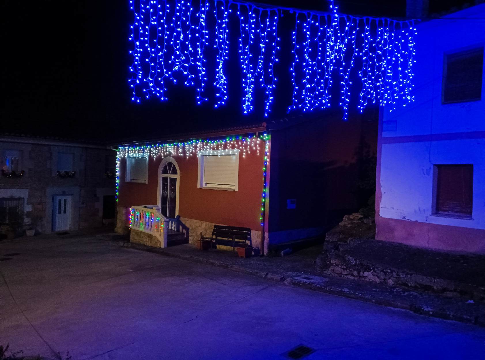 Otra estampa anual de una vivienda de Cavia con el nuevo alumbrado exterior del Ayuntamiento de Cavia.