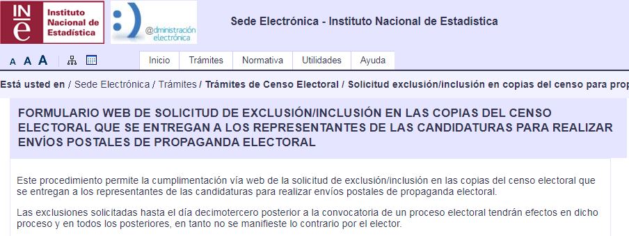 Para darse de baja en la propaganda electoral. Darse de baja de los envios postales de propaganda electoral. Sólo con el certificado digital o PIN.