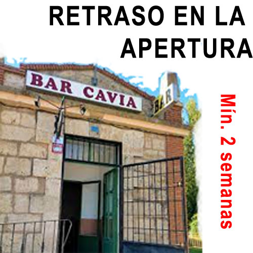 Nos ha llamado la nueva gestora para hacernos saber que tiene que realizar un retraso en la apertura del Bar de Cavia por motivos técnicos de papeleos y diferentes equipamientos necesarios para realizar cafés, hielos, lavavajillas, plancha…
