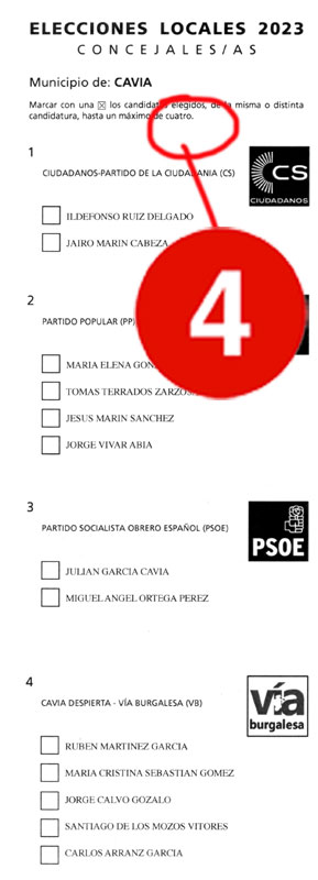 Está escrito en la papeleta, se puede votar hasta 4, es decir, 0,1,2,3 o 4.